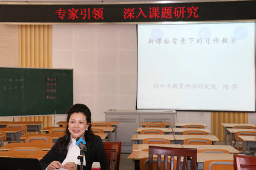 为了深入推进 学校“小学语文教学中提升学生语用能力”的课题研究,提升学校语文教研层次,5月24日下午,甘泉小学邀请来全国知名小语专家、省特级教师陈萍教授指导作文教学和课题研究工作。