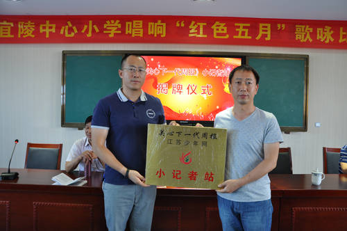 6月2日,江苏省《关心下一代周报》社宜陵中心小学小记者站授牌仪式在该校朝旭楼四楼会议中心隆重举行,报社编辑毛占海、周报扬州地区负责人单军、区局任天稳督学为宜陵小学授牌。