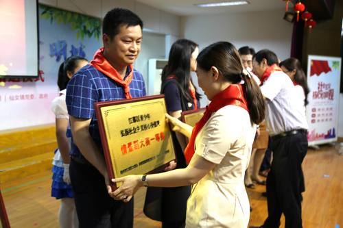 最后,与会领导还给在“江都区青少年弘扬社会主义核心价值观情景剧”大赛中获奖的学校颁发了奖牌。