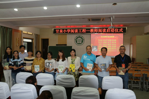 为了使每位教师由内而外地散发朴实、端庄、温文尔雅的书卷气,甘泉小学启动了“闻书香,广阅读”的教师阅读工程。利用抽奖形式,以刘庆昌校长为代表的21名教师获得第一批“校长赠书”,同时学校在阅读时间、阅读形式、收获交流等方面进行了相关规定。从校长、老师开始,捧起书本,品味书香,爱上阅读。学校持续开展的“校长赠书”活动,旨在借助阅读,提升教师的学科素养与人文内涵,以扎实学识丰厚课堂教学。