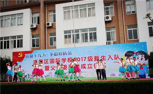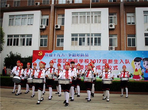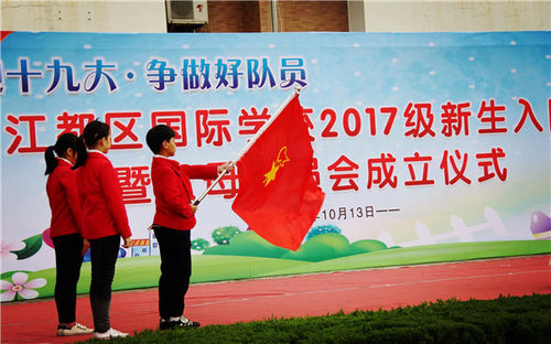 金秋十月,追随着共和国前进的步伐,中国少年先锋队走过了68年的光辉历程。2017年10月13日,江都国际学校“喜迎十九大,争做好队员——2017级新生入队暨父母委员会成立仪式”在小学部操场隆重举行。