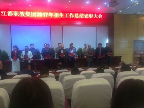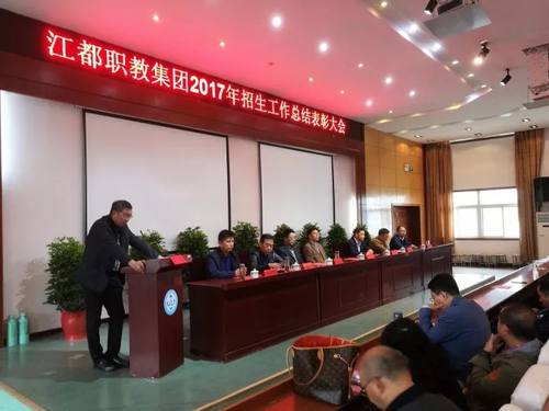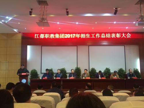 10月18日下午,江都中等专业学校在会议中心召开2017年招生工作总结表彰大会。学校校长邓立新,副校长张树林、张忠树,集团党委副书记蒋锋,集团办公室主任蒋孝辉,区教育局成职科吴军科长,区教育局招生办桂兵勇科长也出席了表彰大会并作了重要讲话。会议由集团办公室主任蒋孝辉主持,集团各系部处室领导、各初中校蹲点负责人、参与招生工作的部分教职员工共一百多人参加会议。