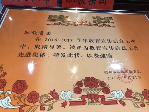 会议对2016年教育好新闻评选获奖单位和个人以及2016—2017学年教育宣传信息工作先进集体和先进个人进行了表彰。江都职教集团在2016-2017学年教育信息工作中被评为教育宣传信息工作先进集体。