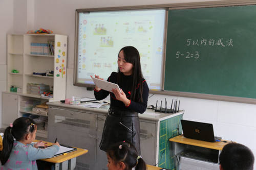 检查组先在一(3)班听了一节智慧课堂教学汇报课。王飘飘老师熟练地运用信息化终端资源“畅言互联”教学系统执教《5以内的减法》,在网络环境下学习,学生兴趣浓厚,适时的反馈,更是提高了课堂的学习效果,将“高效”“互动”“反馈”“评价”落到了实处,学生乐在其中,充分展现了现代教学软件介入课堂教学的优越性。