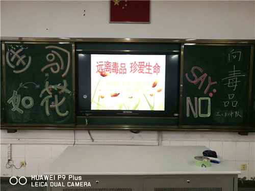 开展一次主题班会:全校利用11月16日周四班队课时间组织一次以禁毒为主题的主题班会,黑板布置醒目,内容准备充实,教育效果颇好。