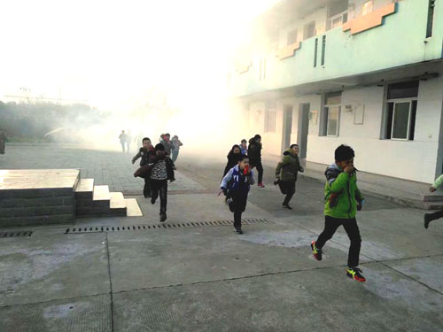 12月1日下午3时,杨庄小学的师生们在正常的工作、学习。突然,两栋教学楼的走廊和楼梯过道里烟雾弥漫,同时,响起了安全警报。这是一次例行的校园安全逃生演练,与往常不同的是,这次演练,学校组织了专门力量,情境高度仿真。