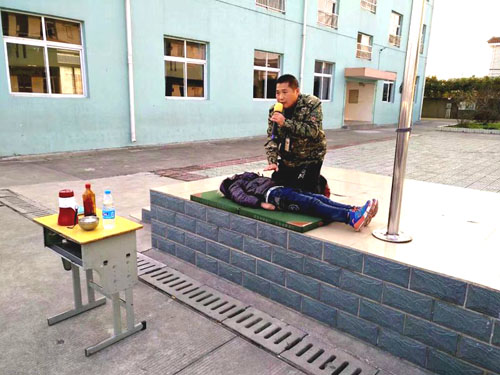 最后,利用学生集合在操场的机会,学校还特别邀请了一位消防宣传员,对学生宣讲了食物中毒和防溺水常识。