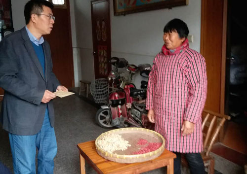 为了响应习总书记的号召,11月30日下午,江都中等专业学校校长邓立新、副校长张树林、工会主席刘立新、办公室主任蒋孝辉来到郭村镇大新村,将党的关怀与温暖送到农家小院、田间地头,向该村弱势困难群体送上扶贫资金21500元。