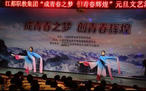 2017年12月28日下午13:30,在职教集团会议中心举办“成青春之梦 创青春辉煌”2018年元旦文艺汇演。江都区职业教育集团校长邓立新、副校长张树林、党委副书记、纪委书记张红旗、校长办公室主任蒋孝辉、经贸系主任魏萍、党支部书记龚贵锦、校学生处主任王成、校团委书记全爱国以及经贸系校外实训基地眼视光验配负责人莅临现场,与职教学子喜迎元旦,相约2018。蒋孝辉主任上台致辞,勉励全体师生并肩同行,朝着现代化、智慧化的社会共度风雨、同沐阳光。在新的一年,进一步启动现代化示范校建设,推动素质教育,提高教学质量,捉住机遇,开辟创新,争取更大成功。