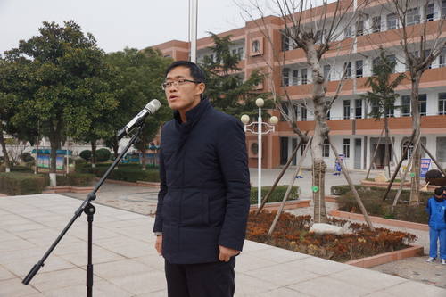 他号召全体同学要在站在四星高中和全国文明校园的平台之上,2018年一起追逐梦想,要积极响应党中央习总书记提出的“幸福是奋斗出来的”。最后,他提醒全体同学增强安全意识,提高自我保护能力,坚决杜绝交通等意外事故的发生。
