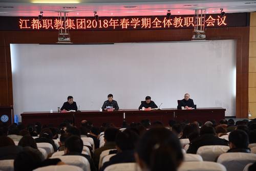 2018年2月23日上午,江都职教集团顺利召开新学期工作会议。全体教职工参加会议,邓立新校长、张忠树副校长、张树林副校长、张红旗书记对本学期进行了工作安排。