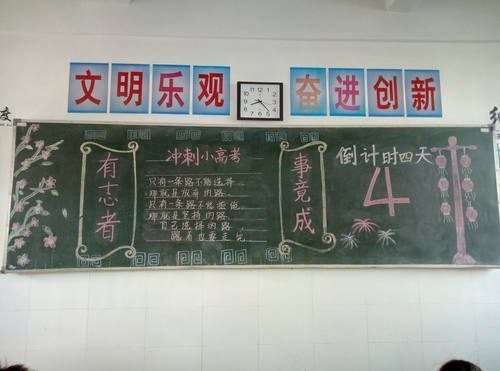 会前,学校及各个班级都从横幅、黑板报等营造奋斗拼搏、冲刺迎战的积极氛围。