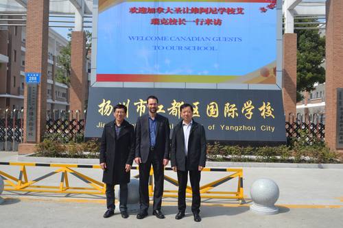 2018年3月28日上午,加拿大Saint-Jean-Vianney College(圣让维阿尼学校)Deguire Eric(艾瑞克)校长一行来江都区国际学校访问。扬州市江都区国际学校朱小勇书记受吴庆堂校长委托热情接待了来宾,对加方校长一行来访表示热烈欢迎。