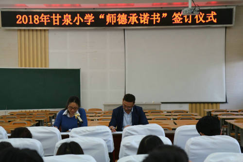 学校组织全体教师签订《2018年度甘泉小学教师践行师德创先争优承诺书》,组织发放《邗江区新时代“好老师”指南》,刘庆昌校长要求全体教师严守师德底线,在认真学习的基础上,用实际行动追求师德高线,争做“四有”好教师。