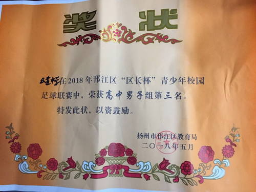 5月5日上午,邗江区“区长杯”青少年校园足球联赛(高中组)在蒋王中学赛区顺利举行。公道中学足球代表队二十余人在学校曾天云副书记的率领下参加了本次区级比赛。