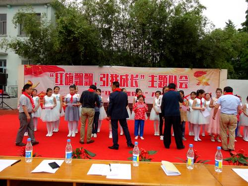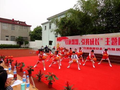 下午3:00,“红旗飘飘,引我成长”主题队会暨“红领巾跟党走”入队仪式在杨庄小学操场上正式举行,活动过程分为三部分:第一篇章:红色之旅——真心颂我党,第二篇章:入队仪式——红领巾跟党走,第三篇章:争章之旅——童心写未来。配乐诗朗诵《党在我心中》、童声合唱《四季的问候》《飞飞歌》、舞蹈《等你回来》、篮球操《篮之梦》等精彩的节目不时赢得来宾们的阵阵掌声。