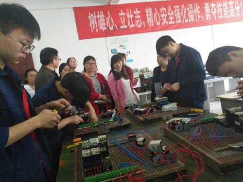 来到该校机电系数控技术应用实训室,就像置身一座现代化、智能化工厂。这边,数十台数控机床、数控加工中心依次排列,机电班学生正在各自岗位上认真实践操作。“学校推行工学结合,教学做一体化的教学方式。”18岁的戎晓文说,他是2015届“3+4”本科机电班学生,今年全班31人,全班成功转段考上盐城工学院。目前大家基本掌握车、钳、数控操作流程,6月份将转入CAD电脑制图实习。来到楼上,综合高中电子专业的同学们正在调试电路,很多家长感叹好好训练一定能学一身本领。