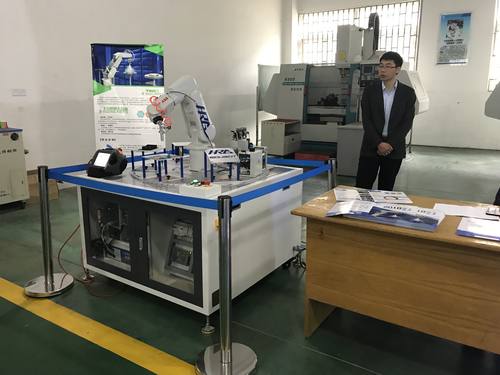 那边,工业机器人实训展台前围满了学生家长,不少家长拿出手机拍摄照片、视频,记录了活动过程。“啧啧,这是高科技。”只见工业机器人现场操作码垛、焊接、激光切割、激光雕刻、搬运等五大应用流程,俨然是一个小型智能车间。据介绍,这是扬州市唯一一家工业机器人实训基地,学校投资数百万,为学生实训学习提供了优质的平台,且学生入学就签订就业协议,毕业等于就业。