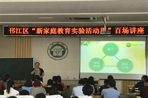 5月15日下午,扬州市邗江区新家庭教育活动周百场讲座进校园活动走进了扬州市甘泉小学,爱自然生命力体系亲子导师、妇联系统专题宣讲师、家庭教育指导师、少儿英语资深教师、三河海贝教育创始人任丽新老师为六年级200多名家长主讲了《学做专业父母,培养杰出孩子》。