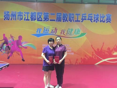在江都区第二届教职工乒乓球赛中,邵伯高级中学代表队团结协作、敢打敢拼,一路过关斩将,团体以一场未丢的骄人战绩荣获冠军,刘海虹、刘萍分获女子单打第三名、第四名的优异成绩。