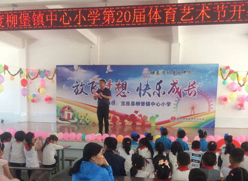 魅力校园,青春飞扬。在六月这个富有诗意的季节里,柳堡镇中心小学又迎来了一年一度的校园体育艺术节。6月1日上午,该校的全体师生和部分家长近800人齐聚学校礼堂隆重举行了“2018年度柳堡镇中心小学第20届体育艺术节开幕式”。