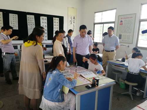 与会同志在引导员的指引下首先观摩了该校善正大道及推进“三品教育”成果展示;接着,参观了学生大课间活动文化长廊以及特色社团活动。大课间活动形式多样,内容丰富,有足球、篮球、多人多足、阅读、棋类等,趣味性浓,学生参与度高。学校精心打造的“荷之韵”书法社团和“油水分离”艺术工作坊各有特色,引得领导老师们驻足观赏。