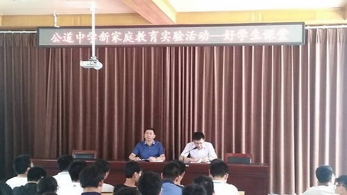 6月24日中午,在公道中学学海楼多功能教室,高一年级组织开展了公道中学新家庭教育实验活动——好学生课堂。