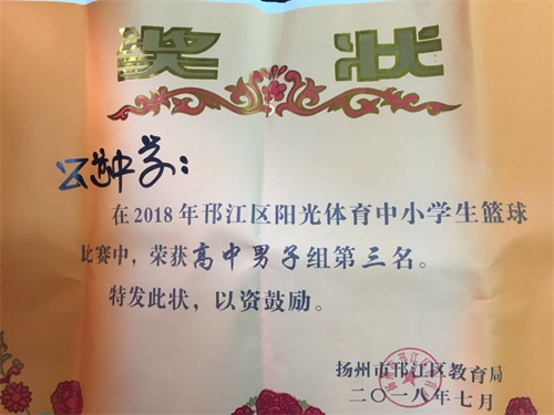 在接下来第二场对阵瓜洲中学的比赛中,由于体育教研室王林宝、滕达等教练员及时调整了防守和进攻战术,通过联防、挡拆、突破、快攻等有效手段,以较高的比分拿下了第二场。在交叉决名次的第三场比赛中,学校球员们更经受住了体能和意志的考验,再以较大的比分优势战胜了扬州新东方中学,最终取得了本次高中男子组比赛的第三名。