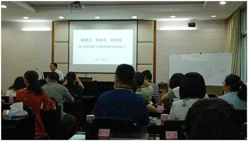 闷热难耐的炎热天气,丝毫没有减弱宝应县乡村英语骨干教师培育站全体成员研修的热情。7 月8 日—11日,培育站全体成员在扬州江海学院参加了市中学英语高级研修班研修。 上英语教材编写主要负责人—何锋教授的培训《新概念 新要求 新挑战》的讲座,以英文课改思路为重点,分支讲解接下来的工作,通过分析和幽默的语言赢得教师的一致好评,同时在学习的过程中让大家对以后的英语教学有更深刻的认识。 盐城师范学院李箭教授做了题为《深度学习:指向核心素养的教学改变》的讲座,以核心素养为主题,新的教学理念、新的感受、新的体会。 与会人员在交流中体会到对英语的教育理念有更加新的认识,教授的分析和举例让大家体会到现在英语教学理念和教学方法的改变。 四天的学习很快就结束了,虽然高温,但是培育站成员们都听得特别认真,在学习中也有了新的进步,因为收获满满的。