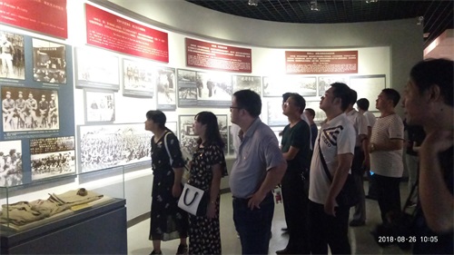 26日上午,全体党员干部乘车前往云岭,先后参观了叶挺铜像广场、新四军军部旧址、王稼祥故居纪念馆和新四军史料陈列馆。陈列馆内,一幅幅珍贵的图片,一个个感人的故事,还有那些新四军同志生前战斗、使用过的物品,生动再现了革命先驱为新中国革命事业艰苦奋斗的感人场景。全体同志紧随解说员,认真聆听,仿佛置身于当年那个艰苦卓绝的年代,感受到了当年新四军老一辈无产阶级革命家的丰功伟绩。在新四军史料陈列馆大厅内,全体党员举起右拳,在党支部书记王忠东的带领下,重温入党誓词,铿锵的誓言表达了党员们再续红色血脉,传承革命信仰的斗志和信心。