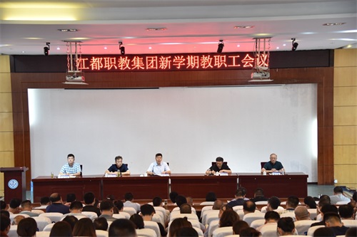 2018年8月30日上午,江都职教集团新学期工作会议顺利召开,校长室全体成员,全体教职工参加会议。