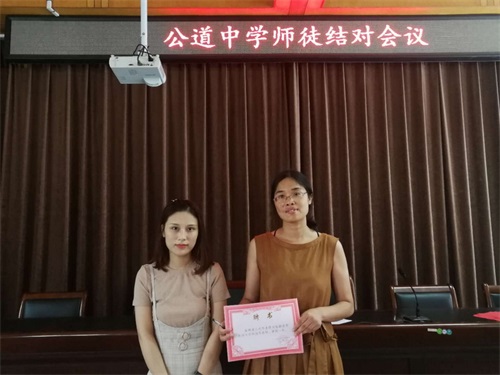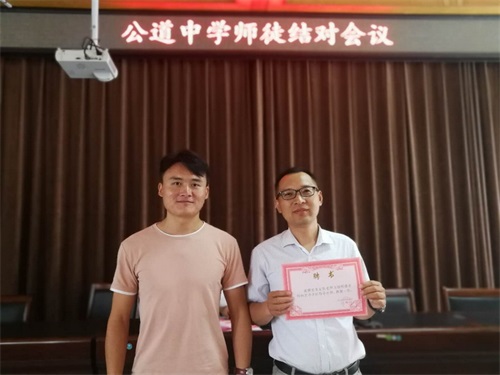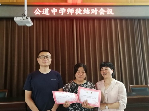 会议由学校党总支副书记徐伟、教科处主任主持,首先为学校聘任为师傅的老教师们颁发了聘书,希望老教师在师德、教育、教学、研究等方面给徒弟做出榜样,全心全意帮助、指导、促进徒弟专业成长。其次,为了进一步明确学校师徒的权利与义务,他们还一同签定了《公道中学师徒结对协议书》。