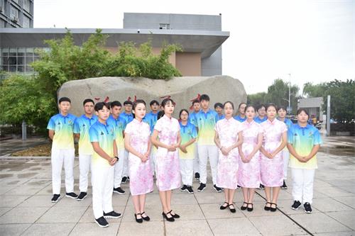 9月13日下午,25名志愿者在经贸系团总支书记孔旋老师带领下接受了江都电视台杨帆记者的采访。孔书记说:“学校在接到通知以后,校领导非常重视,专门召开会议布置工作。邓立新校长要求校团委要借助这次机会,选拔优秀的志愿者参加活动,将学校青年学生不怕吃苦,迎难而上,勇于奉献,志愿服务的精神体现出来!让更多的人了解扬州,了解我们职业学校的学生。”我校在1000多位报名者中选拔出50名志愿者,又经过专业培训最终确定25名同学成为省运会志愿者。