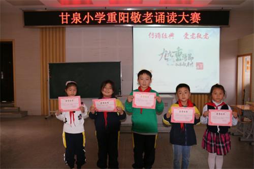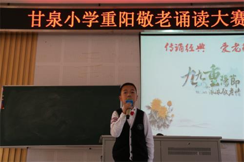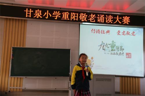 金风送爽,丹桂飘香,我们又迎来了传统节日——重阳节。在这美好的节日里,甘泉小学“九九重阳节 浓浓敬老情”重阳敬老经典诵读活动在多功能大教室隆重举行。本次活动旨在通过经典诵读比赛,弘扬优秀文化,受到经典美文的熏陶,激发学生阅读经典的兴趣,提高学生的文化素养。