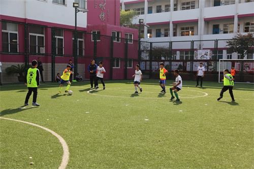 两场校际足球赛,将本次活动推向了高潮。首先是龙川小学与邵伯小学的一场对抗赛,双方队员你争我夺,频频射门,球场上高潮不断。紧接着,仙小集团足球队与浦头小学足球队进行PK,队员们那漂亮的传球、默契的配合,让绿茵精影继续演绎。
