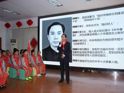 作为身边的英雄,作为英雄李继富的战友,李彬伯伯曾为我校六(8)中队授旗“李继富英雄中队”,英雄的精神需要传承,今天,他又把这旗帜授予了三(9)中队,“发扬英雄精神,继承英雄事业”,他的谆谆教诲让每一个学生永记于心。