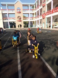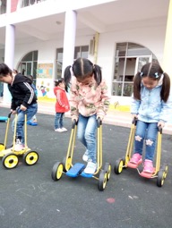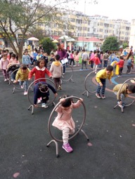 有句俗语说:“一日之计在于晨”,晨间户外活动是幼儿园一日活动的重要环节,是幼儿园体育活动的一种形式,同时也是确保幼儿每天两个小时户外活动的基本途径,晨间体育活动既可以激发和恢复幼儿肌体主要器官的机能,又能使幼儿精力充沛、精神愉快地开始一天的生活,促进幼儿身心的健康发展。在颜园长的带领下,我们柳堡镇中心园的老师们以饱满的热情,根据幼儿的动作发展情况,增加器械,提升游戏难度,充分满足孩子们活动锻炼的需要,每天精心准备着丰富多彩的形式多样的晨间体育活动。 瞧,早上的天气虽然有点冷,孩子们已经开始运动起来了,钻木桶、过山洞、走独木桥、跳圈、攀爬,骑小车、滚轮胎、走梅花桩……孩子们时而跳时而滚,时而爬时而钻,玩的不亦乐乎,一个个快乐的身影活跃在操场上,阳光般的笑容印在了天真可爱的脸蛋上。