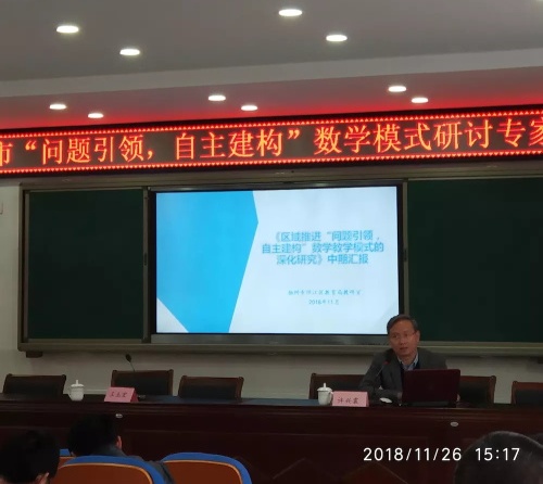 最后,由省重点资助课题“问题引领,自主建构”总负责人许兴震主任作主题为:《深耕——高中数学课堂教学改革的邗江实验》报告,并对下一阶段课题组的活动安排做了详细的部署。我们热切期待,省重点资助课题“问题引领,自主建构”在邗江,乃至全市得到进一步推广、实施,为全市高中数学教育教学质量提升再立新功! |
