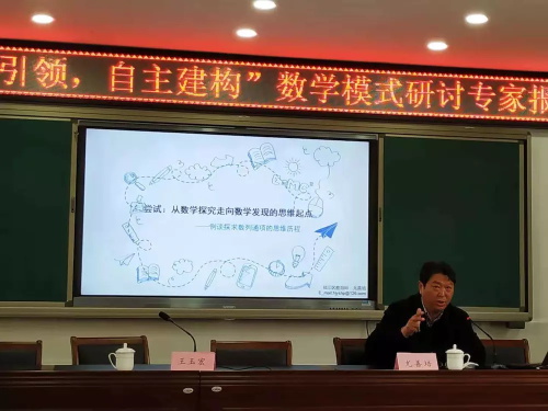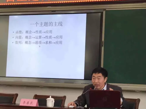 当天下午,活动由专家报告、课题成果中期汇报两个议程。首先,江苏省中小学教研室李善良教授作了《数学核心素养的落地、生根、生长》主题报告、江苏省省特级教师尤善培教授作了《尝试:从数学探究走向数学发现的思维起点》报告。两位专家站在高层次的视角,生动准确的点拨,内涵丰富的讲座让全体数学老师如沐春风,受益匪浅,有力提升了老师们对数学教育教学的进一步认识,也必将对全市数学教学工作、也包括公道中学及起到积极的促进作用。