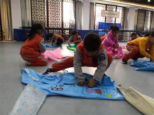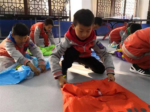日,龙川小学举行了一到三年级的叠雨衣比赛。