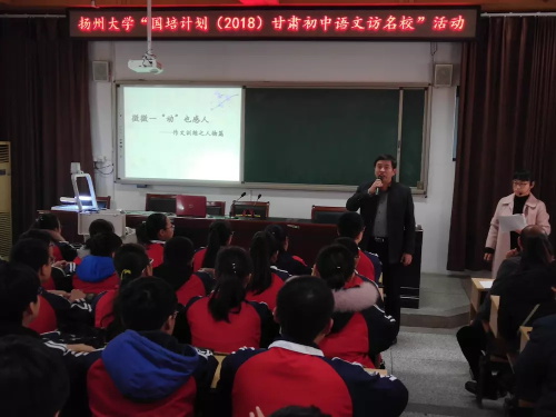 11月29日下午,扬州大学“国培计划”暨邗江区高中语文名师工作室活动在公道中学顺利举行。扬州大学“国培计划(2018)甘肃初中语文访名校班”近百位学员在扬州大学张立兵博士等带领下来到公道中学考察学习,区高中语文名师工作室导师、公道中学副校长李兆兵老师盛情接待,并主持本次活动。