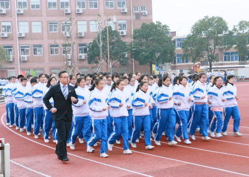 本次活动在学校升旗仪式后有序展开。首先由学校德育处杨正海副主任向大家详实讲解了跑操活动流程及考核评比等实施方案,紧接着由李兆兵副校长紧紧围绕“每天锻炼一小时,幸福生活一辈子”的主题,向全校师生发出了积极参加冬季跑操活动的倡议,还特别提出了班主任等老师参加跑操活动注意事项——操后微型班会课,结合班级跑操以强化对学生的及时教育引导。最后,本次跑操活动在贡加兵副校长发出的一声枪响中迅速拉开了帷幕。顿时,在公中操场上的同学们伴随着激扬的音乐,立即以整齐的步伐、昂扬的斗志、嘹亮的班级口号投入了2018年首次的跑操活动中。