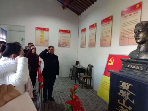 随后,大家又来到柳堡团庄“凤三园”。在参观过程中,全体党员认真参观了纪念馆内陈列的照片、文献、实物等史实材料,看着展厅中一本本泛黄的书籍、一张张珍贵的老相片,还有革命前辈们用过的物品,每一件都承载着一段历史,让党员们备受鼓舞。参观结束后,全体党员在夏凤山烈士的半身铜像前,面对着鲜红的党旗,紧握右拳,重温了入党誓词,再次许下铮铮誓言,共同表达了为党的事业奋斗终生的坚定决心。