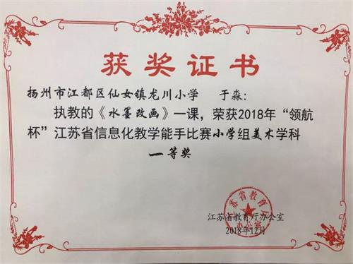 近日,从省教育厅办公室传来喜讯,在刚刚结束的江苏省“领航杯”信息化教学能手竞赛中,龙川小学于淼老师技压群芳,获得一等奖,这是我校在省级教学竞赛中取得的又一骄人成绩。