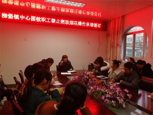 为贯彻落实禁放烟花爆竹,柳堡镇中心幼儿园积极响应政府号召,各教职工积极签订关于禁放烟花爆竹的承诺书,还鼓动家里老人,禁放从身边做起,从自我做起。虽然不在禁放区,即使,农村观念尚陈旧,但老师们以身作则,积极带头,积极鼓动。每个班级都在家长群发放了关于禁止燃放烟花爆竹的倡议书,我们用我们的行为,以身示范,以身渲染,倡导绿色消费,为我们生存的环境,减少一分尘埃,增加一分宁静,消除一分危险,增添一分平安。禁放烟花爆竹,消除安全隐患。