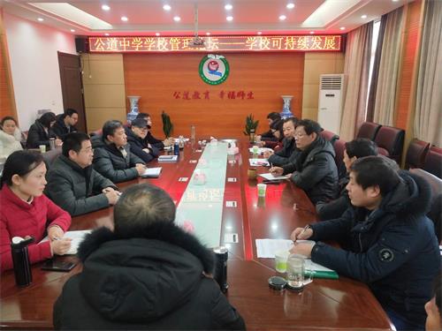 2月14日下午,公道中学在宜思楼四楼会议室召开学校管理论坛一一学校可持续发展,学校全体行政人员及各教研室主任近三十人参加论坛,大家围绕论坛主题,每个学校管理者在论坛上畅所欲言、共议学校未来发展大计!论坛由学校艺教处主任吴爱华主持!