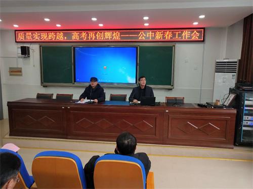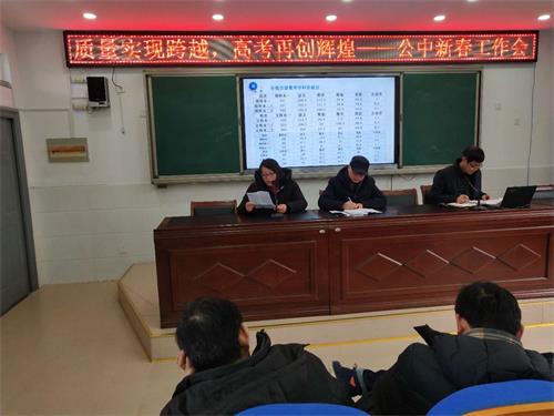 2月15日上午,公道中学在毓贤楼多功能教室召开以“质量实现跨越,高考再创辉煌”为主题的2019年学校新春工作会,学校全体教职工近150人参加会议,会议由学校贡加兵副校长主持!