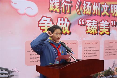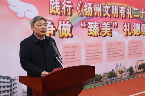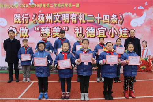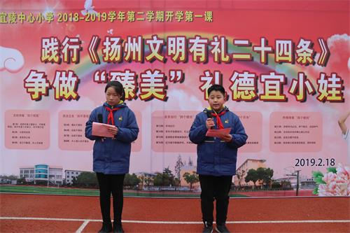2019年2月19日,虽然春寒料峭,但宜陵小学运动场上口号声声,掌声阵阵,庄严而肃穆,一场以“践行《扬州文明有礼二十四条》 争做“臻美”礼德宜小娃”为主题的新学期开学典礼暨开学第一讲活动正在隆重举行。