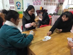3月5日下午,柳堡镇中心幼儿园小一班教师里传来了阵阵欢笑声,原来是工会活动,提前庆祝“三八”国际妇女节呢!大家利用幼儿离园后的时间聚在一起,四人一组玩起了扑克,不会玩的就站在周围围观,有扬州惯蛋、跑得快、争上游,大家兴致盎然,玩得不亦乐乎……一次这样有意义的活动不仅带走了老师们一天工作的辛苦,丰富了老师们的业务生活,同时也增进了同事之间的友谊。