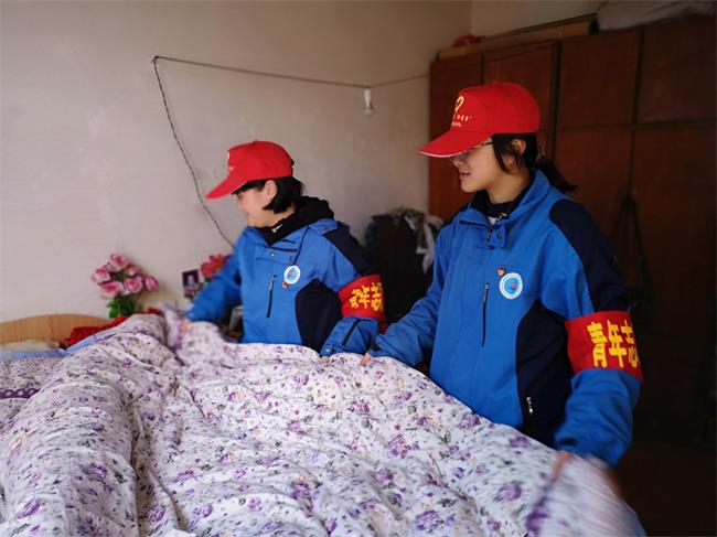 志愿者们的热情高涨,他们拿起打扫工具为老人们打扫院子,为了让老人们睡在舒服的床上,姑娘们挽起袖子为老人们整理床褥。还有的志愿者为老人们整理房间,晒被子,陪老人拉起了家常。这次志愿服务队增添了一位小小志愿者添添,她牵着太爷爷的手走路,捡起庭院里的纸屑,与太奶奶们聊天逗趣,十足一个“成熟”的志愿者,她的到来给老人们增添了不一样的快乐,让老人们享受到了天伦之乐。干净整洁的庭院,一张张快乐的笑脸,一幅幅和谐甜美的画面定格在了这浓浓春意中,敬老院里处处洋溢着志愿者们灿烂的笑容和浓浓的真情实意。